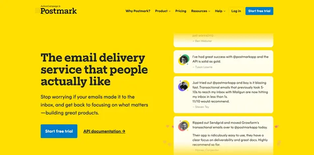 | Postmark | Fast delivery with separate message streams | Free trial only | $15/month (10K emails) | Multiple libraries |