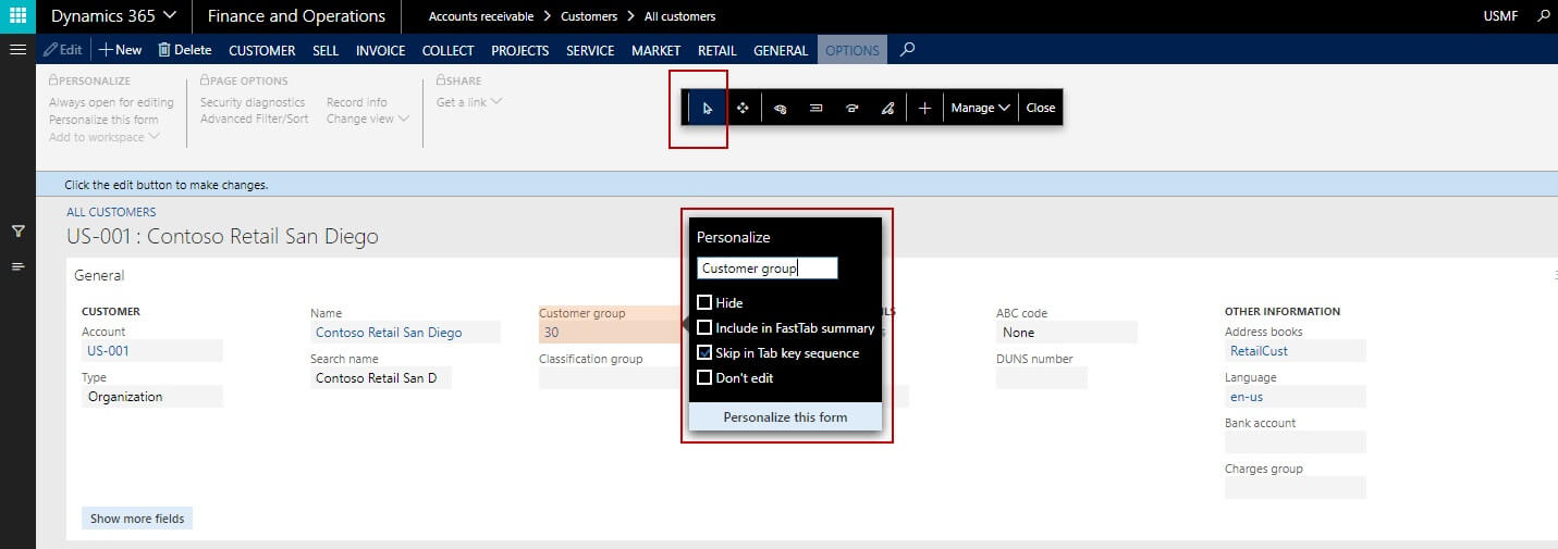 Edit A. It will be used to make the field(s) editable from non-editable and visa-versa B. Click on Edit in personalize toolbar. The form appears shaded.
